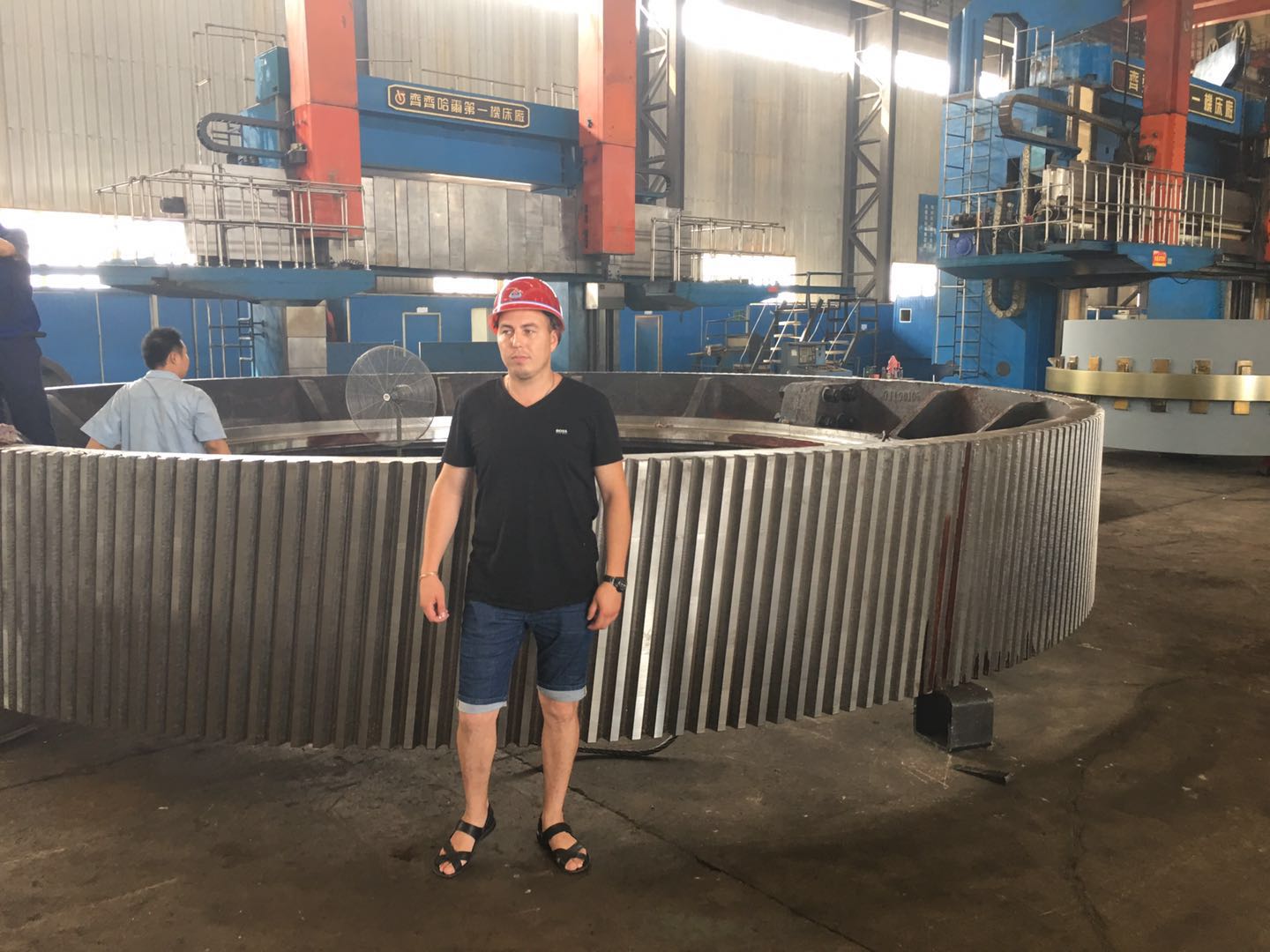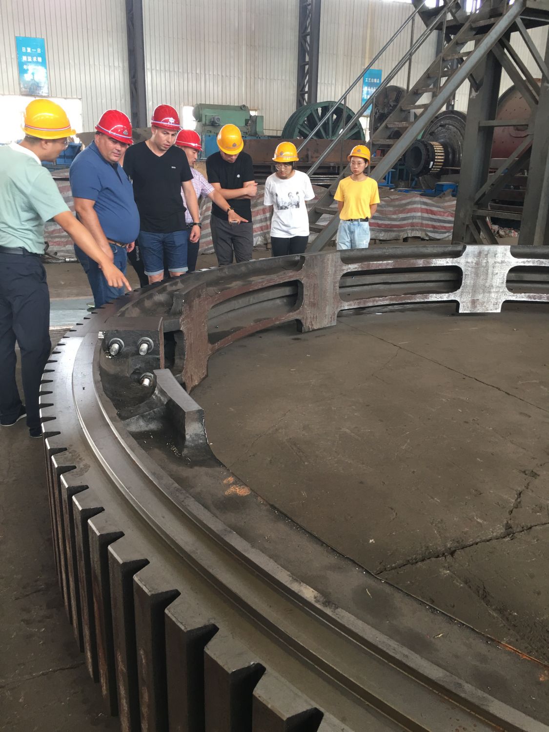 客戶在磨機(jī)配件齒圈前畱影紀(jì)念